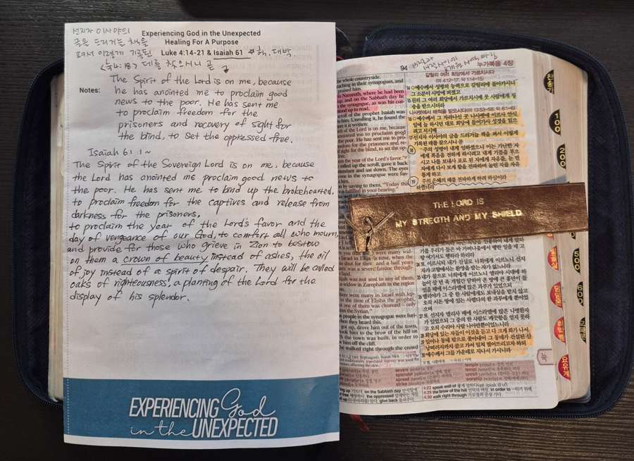 Melissa 목사님이 선포한 본문은…누가복음 4장 14~21절 예수님이 회당에서 읽으신 말씀은 바로 이사야 61장 1~2절이었다. 소름이 돋았다. 어제 묵상하며 글까지 썼던 말씀이 하루 만에 예배 본문으로 내 앞에 다시 펼쳐진 것이다. (우리는 종종 이러한 순간을 맞이한다. 그렇지만 기록으로 남기지 않으면 그날의 은혜는 어느샌가 사라지고 만다.)