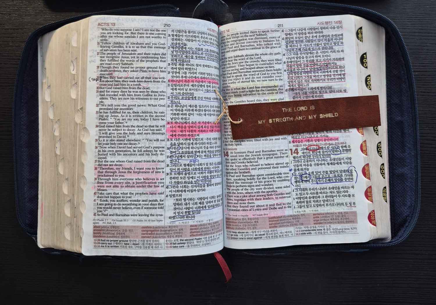 쓰리김의 성경책 : 사도행전 3장 47절 영한 사전이 펼쳐진 모습