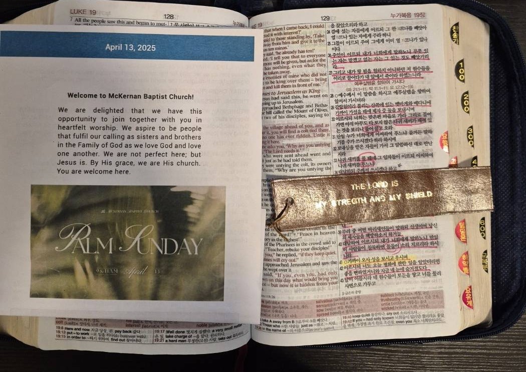 종려주일 예배를 드린 후, 쓰리김의 성경맛집에서 함께 나누고 싶은 오늘의 말씀은 누가복음 19장 32–34절이다.