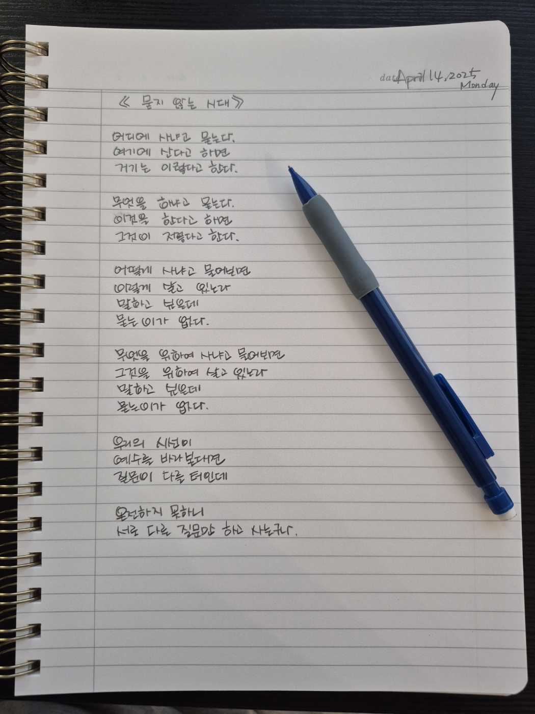 그 대화의 흐름은 너무 익숙했다. 비교 → 불만 → 과시 → 위로받기. 그 순서 그대로였다. 그리고 나도 문득,“나 역시 그런 말을 한 적이 있구나” 하고 떠올린다. 이 패턴에서 벗어날수 있는 방법은 시선을 바꾸는 것이라는 생각이 들었다. 하나님께 시선을 고정하고 비교보다는 본질을 생각하고 불만하기 보다는 감사를 표현한다면 이러한 대화 패턴에서 벗어날수 있을텐데.. 익숙한 표현을 바꾼다는 것 그리 쉽지 않다. 그리고 질문이 바뀐다면 말이다. 대화의 흐름도 달라질수 있을것이라 생각한다.